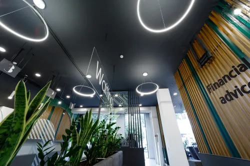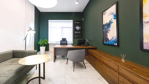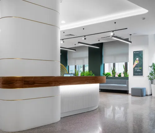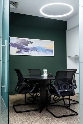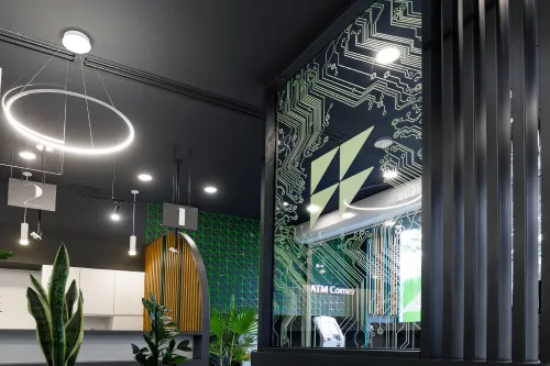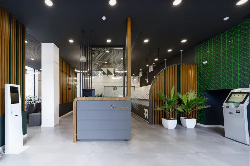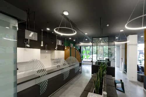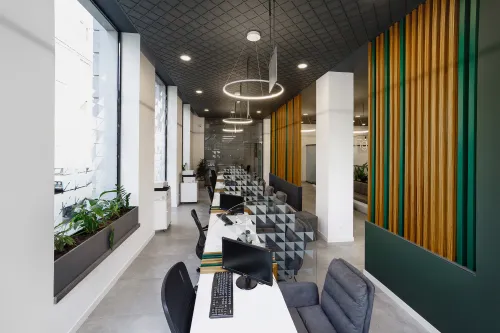 The project was completed in 2020, combining functionality with a unique design approach. High-quality materials, including metal elements and minimalist wooden details, were used to ensure both strength and elegance. Advanced technologies were applied to create a comfortable and efficient workspace.