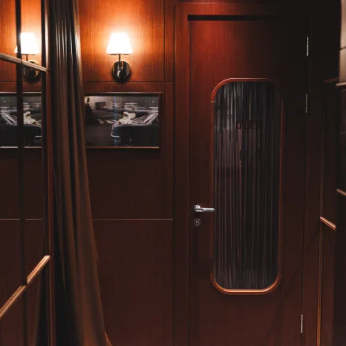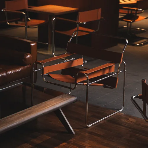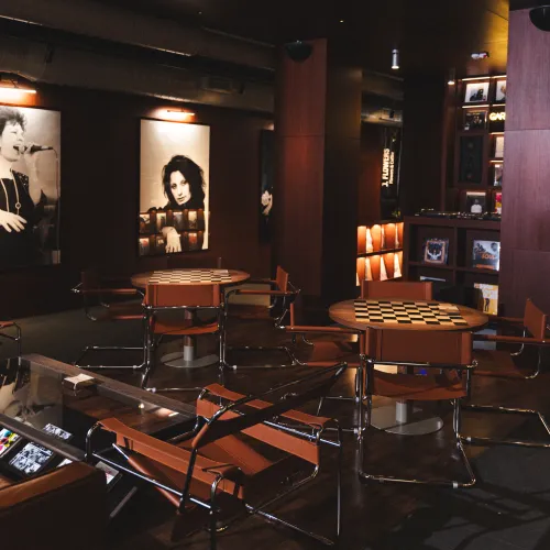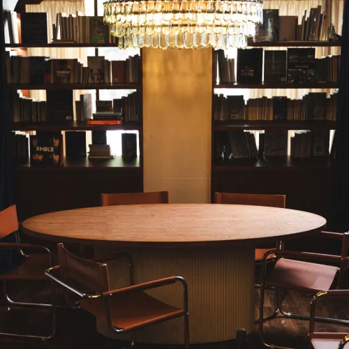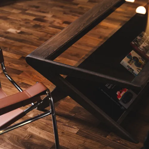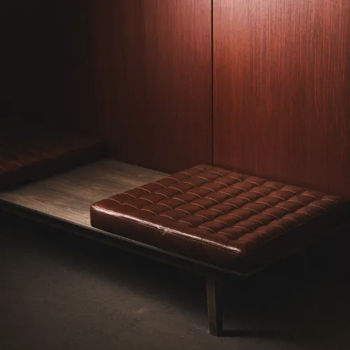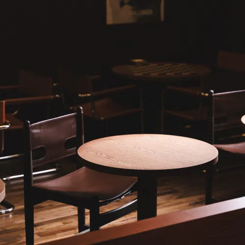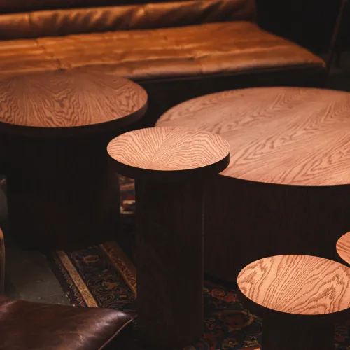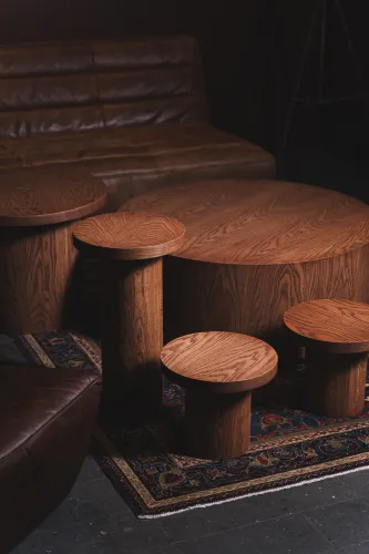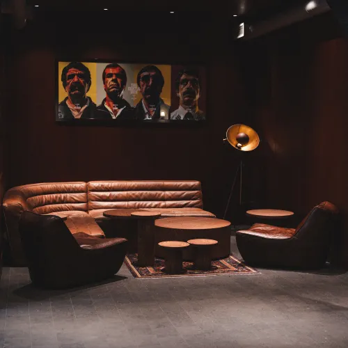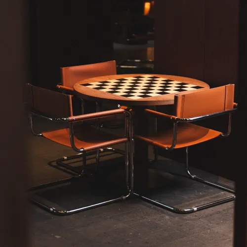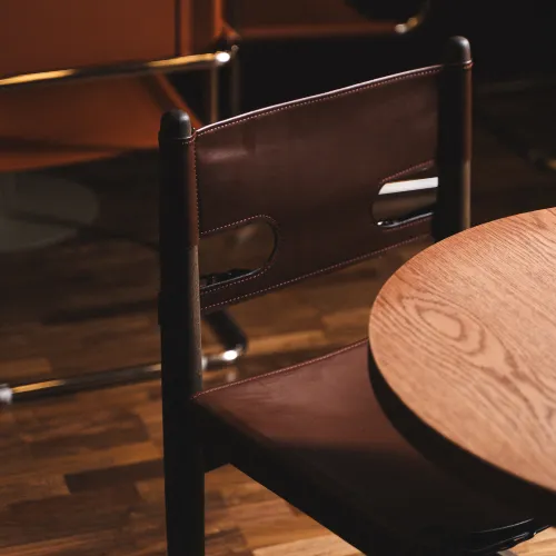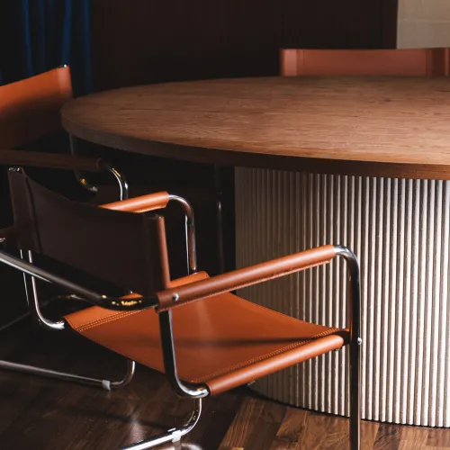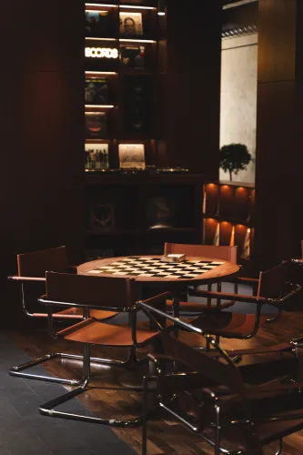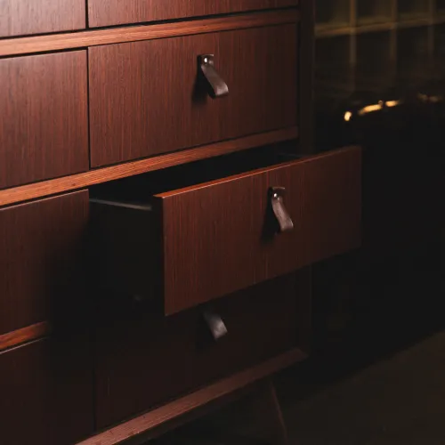 A range of high-quality materials was used, including veneered and painted MDF, wood, leather, and stone. These materials contributed to both the durability and the striking, refined appearance of the design.